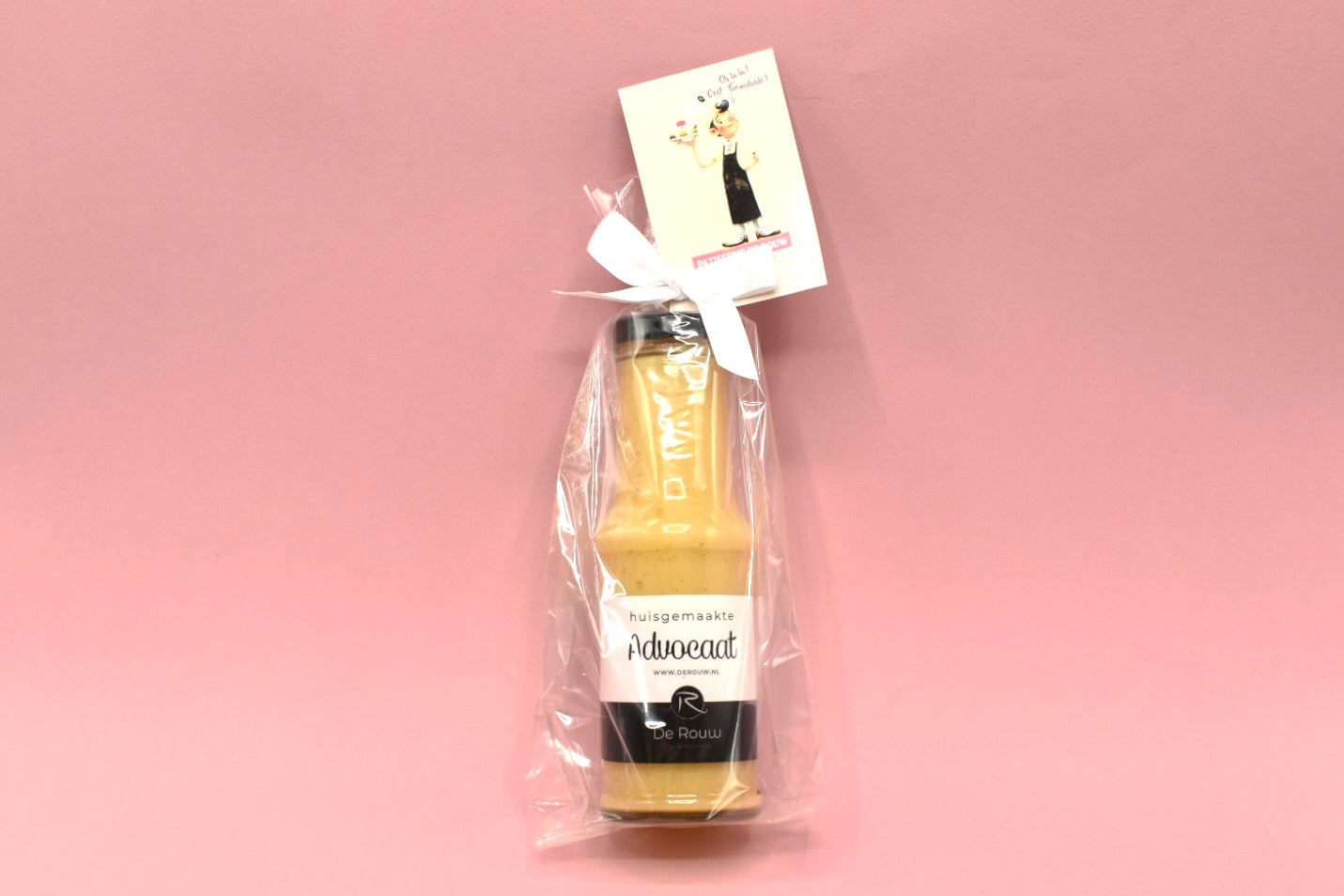 Met liefde gemaakt De huisgemaakte advocaat is met liefde gemaakt van gepasteuriseerde dooiers, wodka, fijne suiker, echte vanille en een snufje zout en is in de winkel en de webshop van De Rouw te koop