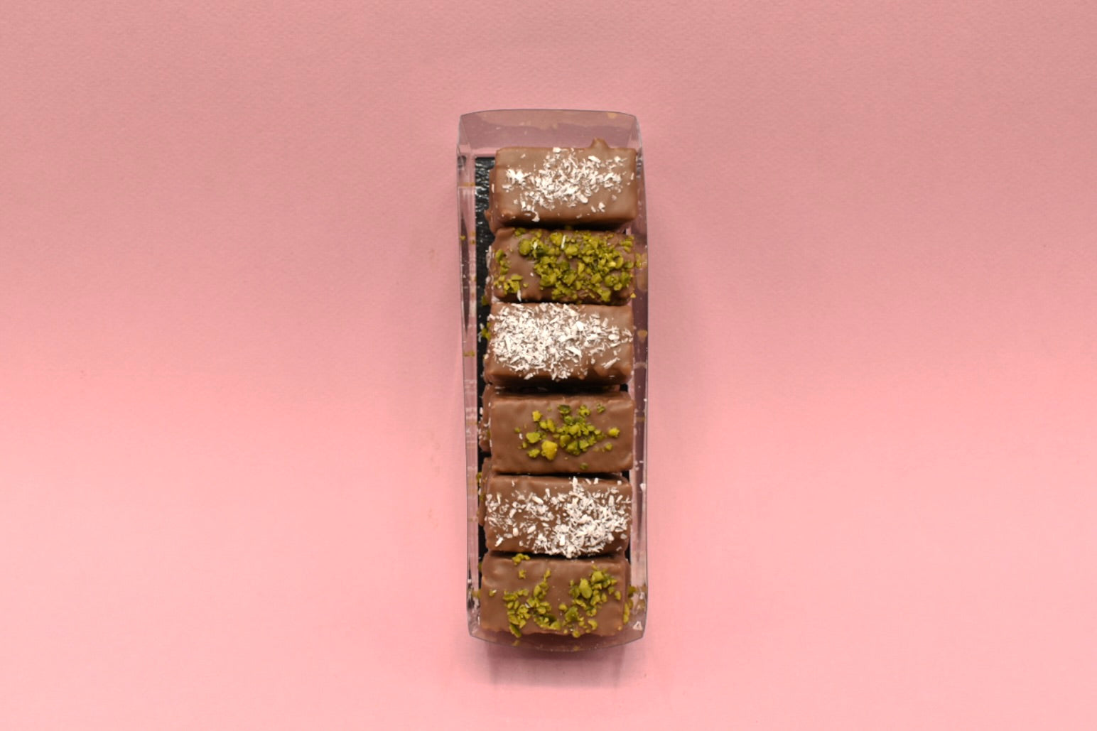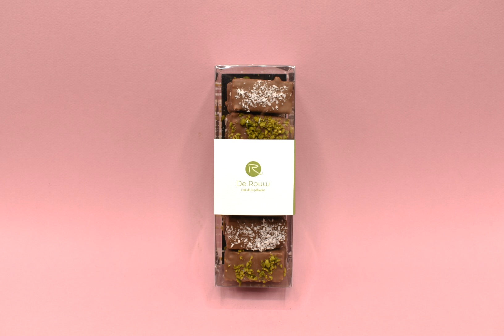 Ontdek de Crispy Toppertjes, een luxe lekkernij die je smaakpapillen zal verwennen. Deze traktatie bestaat uit gepofte en gegrilde rijstkorrels, die bedekt zijn met een verfijnde laag hazelnoot-praline. De knapperige korrels worden omhuld met romige melkchocolade en prachtig afgewerkt met een decoratie van fijngemalen pistachenootjes, kokosvlokken en krokante caramelstukjes. Deze combinatie van texturen en smaken biedt een onweerstaanbare, smaakvolle ervaring met elke hap. Perfect als een luxueuze snack of een elegant cadeau, de Crispy Toppertjes zorgen voor een verrukkelijke verwennerij die zowel visueel als culinaire indruk maakt.