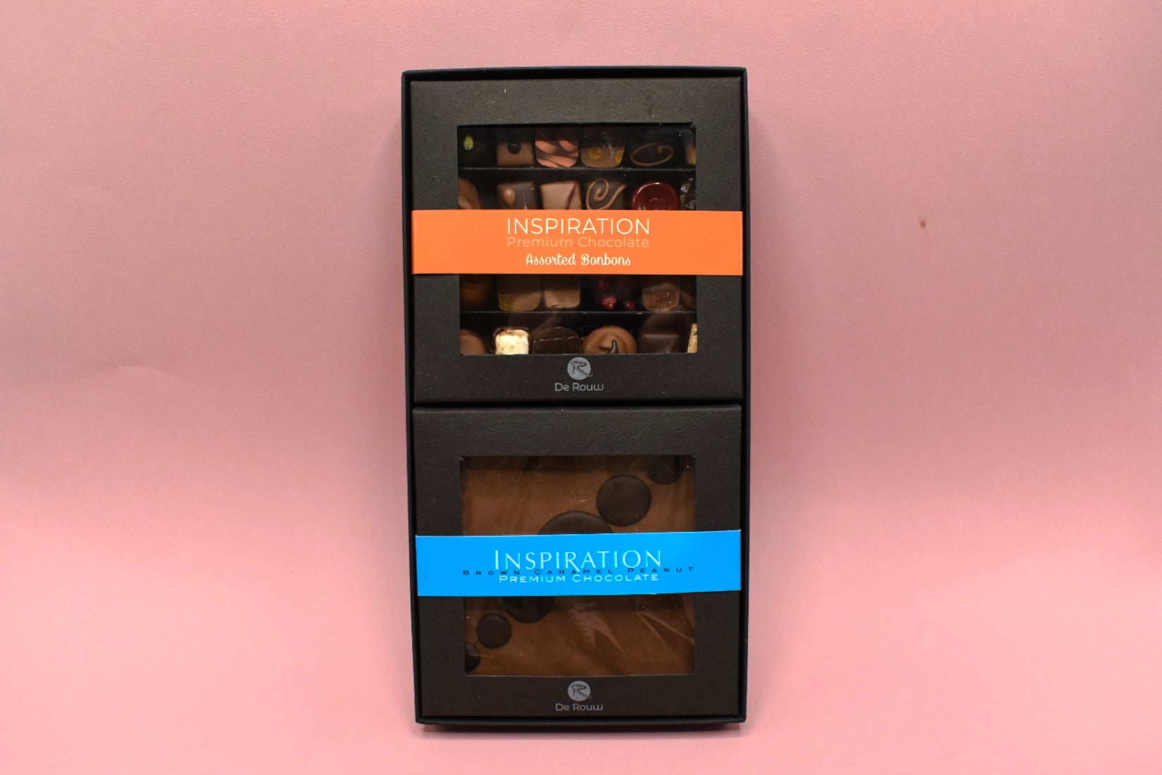 De Presentbox is het ultieme geschenk voor elke gelegenheid. Deze stijlvolle box bevat een verfijnde selectie: een doos vol luxe bonbons en een heerlijke chocoladereep, elk zorgvuldig gekozen om een moment van pure verwennerij te bieden. Alles is prachtig verpakt in een luxe overdoos, waardoor het cadeau een extra vleugje elegantie krijgt. Perfect voor het vieren van speciale momenten of om iemand te laten weten dat je aan ze denkt. De Presentbox combineert kwaliteit en verfijning in één schitterend geschenk, ideaal om indruk te maken en je waardering te tonen. Een cadeau dat gegarandeerd in de smaak valt.
