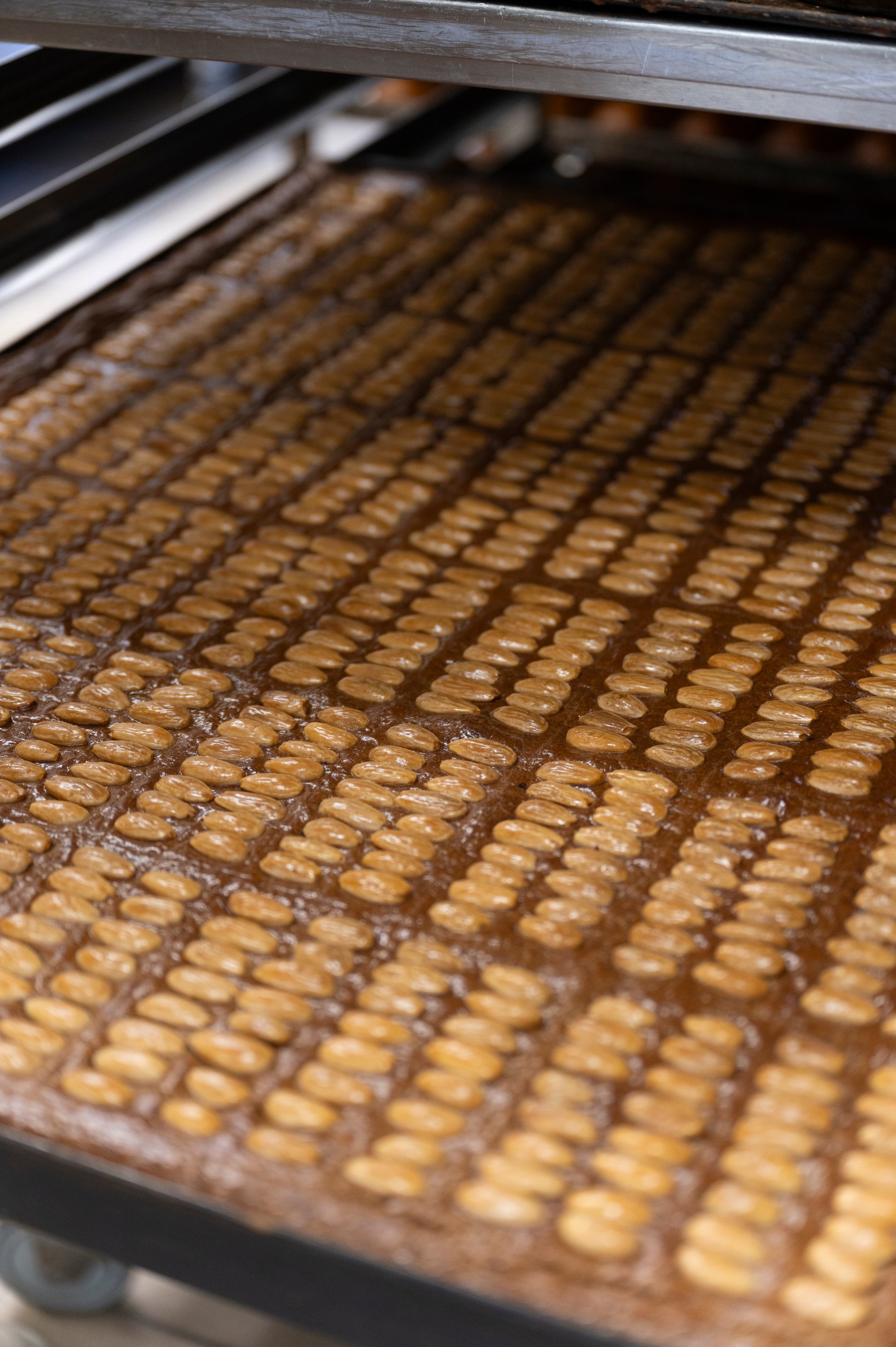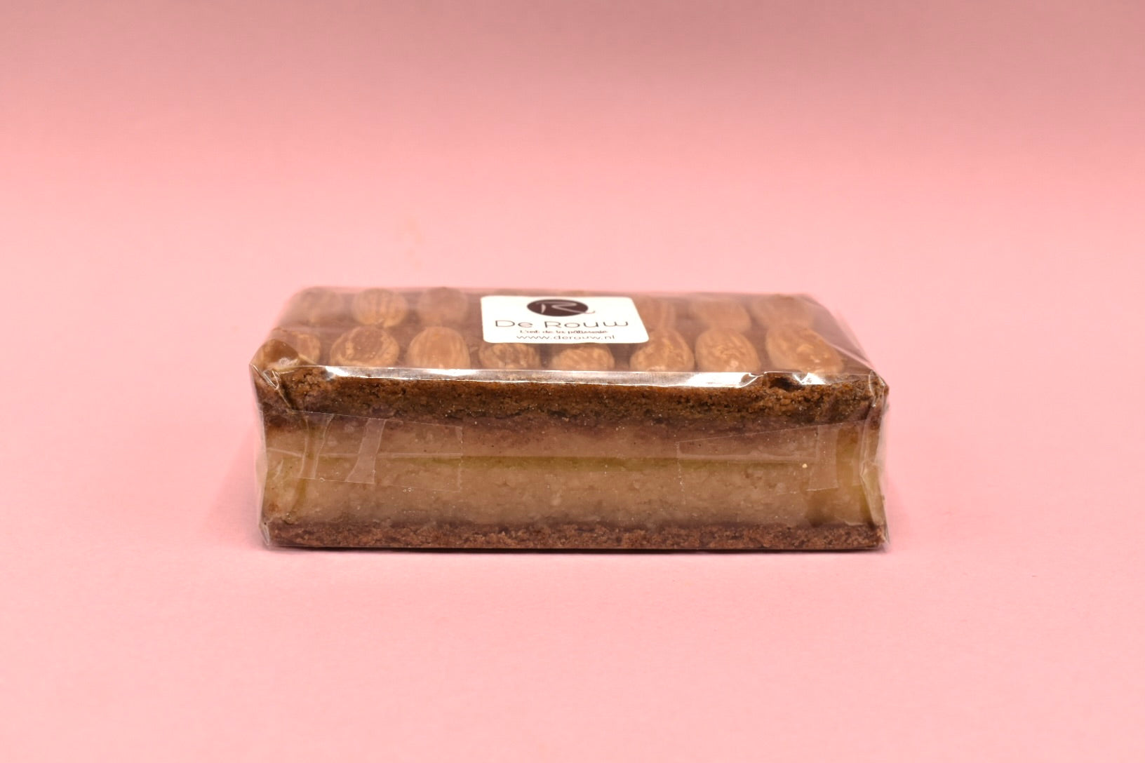 Wat deze lekkernij echt bijzonder maakt, is de vulling. Een royale laag amandelspijs wordt liefdevol in het midden van de speculaasbodem gelegd. Wanneer je een hap neemt, mengen de smaken van de speculaas en de amandelspijs zich op een harmonieuze manier.