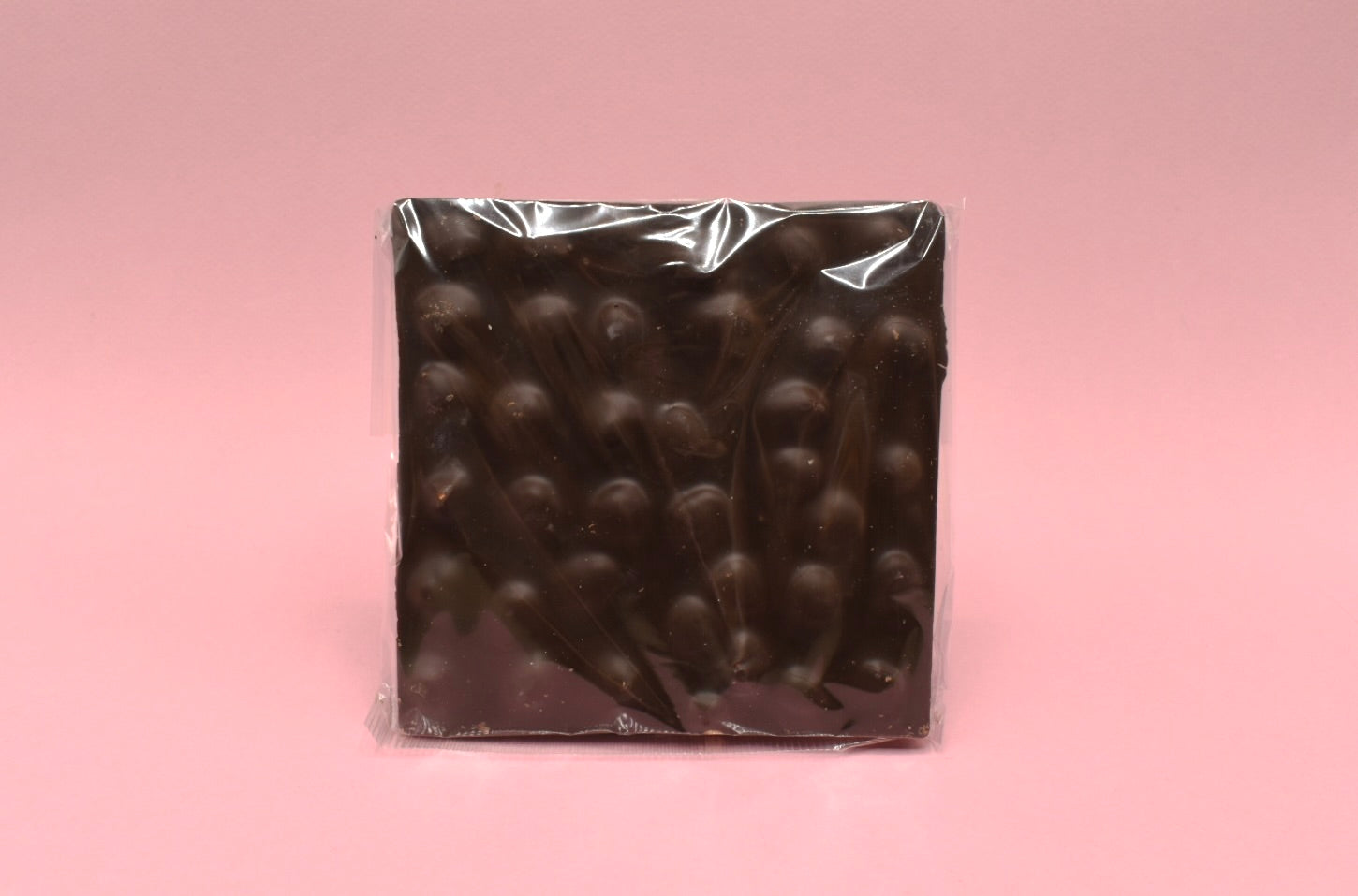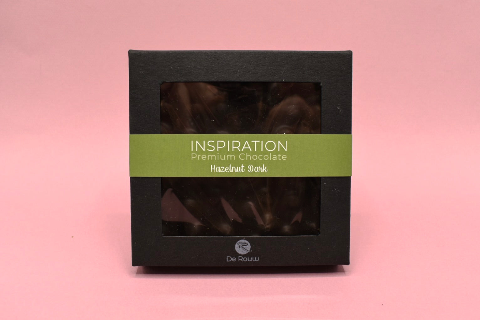 Pure chocolade gevuld met gebruneerde hazelnoten.