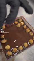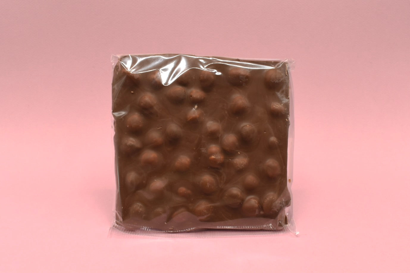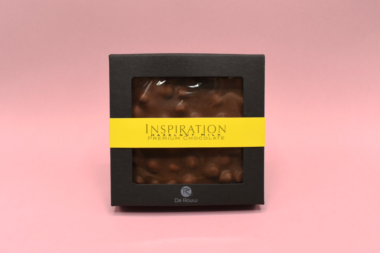 Melk chocolade gevuld met gebruneerde hazelnoten.