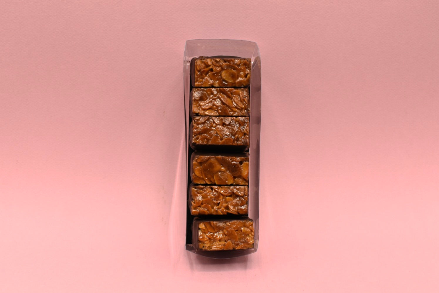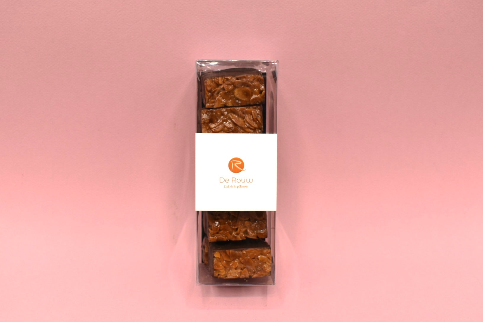 My Wife’s Favorite is een verfijnde lekkernij die elke zoetekauw zal verleiden. Deze luchtige, vorstelijke amandel-frangipane is verrijkt met een smeuïge laag huisgemaakte frambozen confiture, die zorgt voor een perfecte balans tussen zoet en fris. De basis van zeer verfijnde pure chocolade voegt een rijke diepte toe aan deze delicatesse. Elk hapje smelt in de mond en biedt een harmonie van texturen en smaken die samenkomen in een subliem geheel. Ideaal voor een speciale gelegenheid of als luxe traktatie bij de thee of koffie. Dit gebakje is een ware culinaire verwennerij die zijn naam meer dan verdient.