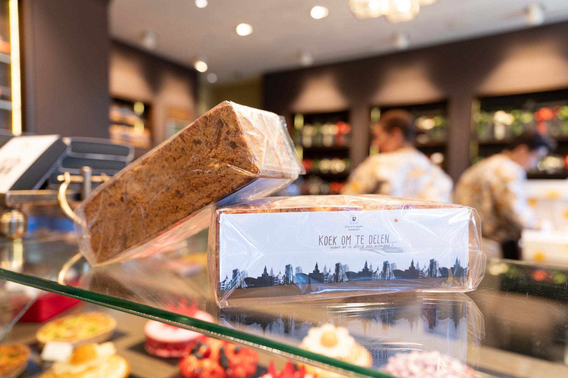 Een heerlijke smeuïge ontbijtkoek gevuld met amarene kers, amaretto en amandel bitterkoekjes en gedecoreerd met amandel spijs.